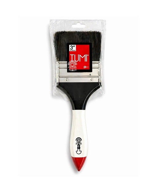 Brocha para pintar, filamentos 100% Nylon cónico DU PONT, adheridos con pegamento epóxico, alta resistencia a los solventes, virola niquelada con mango de madera, uso profesional, para todo tipo de pinturas.medida: 3" (76.2 mm) espesor: 9/16” (14.28 mm.) largo de filamento: 2.1/4” (57.15 mm.)